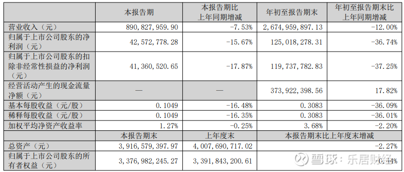 报告显示,飞亚达公司前三季度营业收入为26.75亿元,同比下降12.00%;归母净利润为1.25亿元,同比下降36.74%;扣非归母净利润为1.20亿元,同比下降37.25%;基本每股收益0.31元。
