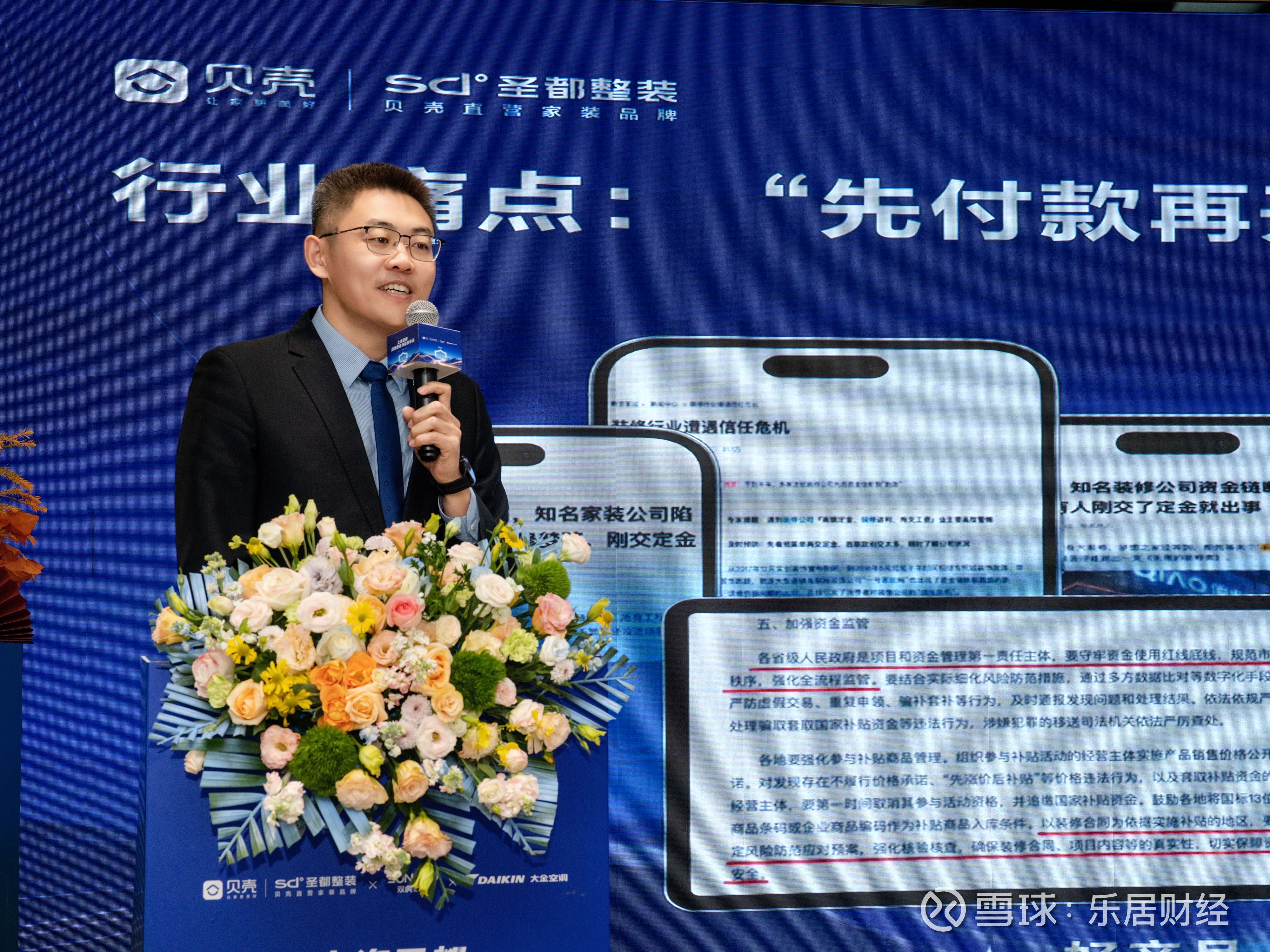在发布会现场,贝壳整装对外关系与发展中心总经理郑深圳在发言中系统性阐述了资金存管服务的核心价值。他介绍到,资金存管在形式上是一项服务,但本质上是构建与消费者的信任纽带,其“满意再付款”的朴素理念直击装修行业预付模式下的资金风险痛点。郑深圳指出,贝壳之所以能率先在家装领域推行此项服务,源于其“对客户好”的基因与在居住领域积累的深厚能力。他强调,推行资金存管的核心在于“将选择权交还给消费者”,这不仅是企业服务的创新,更是推动行业建立基本信任线、走向规范透明的重要实践。