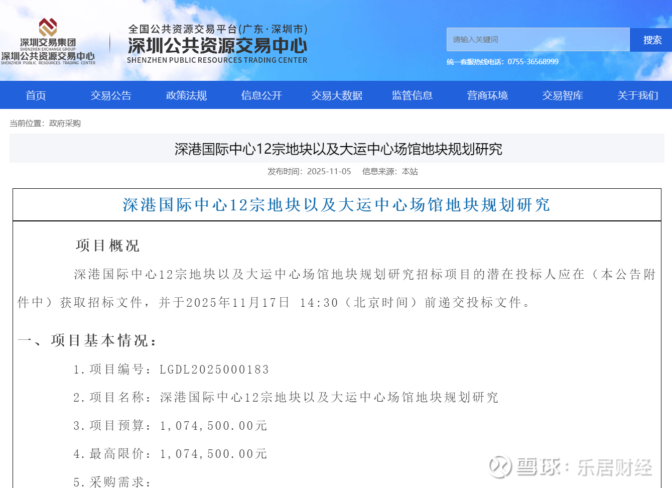 11月初,深圳市规划和自然资源局龙岗管理局发布了一则招标公告,针对深港国际中心12宗地块及大运中心场馆地块规划研究进行公开招标。
