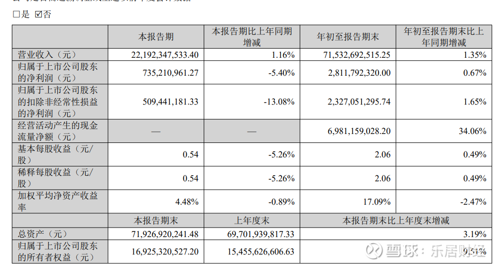 单看第三季度,出现了增收不增利的情况。该季度营业收入约为221.92亿元,同比增长1.16%;归母净利润约为7.35亿元,同比下降5.40%。