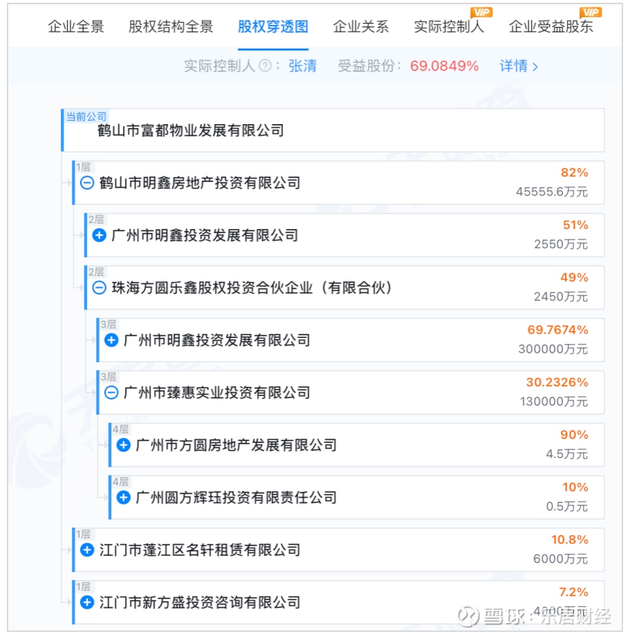 穿透股权,富都发展的实控人为张清,受益股份69.08%及拥有82%的表决权。
