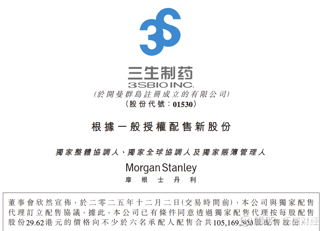 本次配售股份占三生制药当前已发行股份总数约4.32%,完成后公司已发行股本将增至约25.38亿股,承配人合计持股比例约4.14%。配售股份将根据公司2025年6月25日授予的一般授权发行。