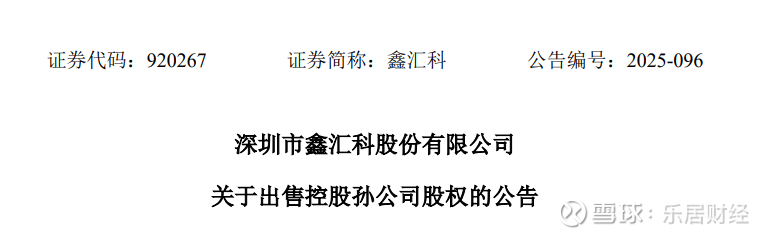 公告显示,鑫汇科鉴于控股孙公司偌恩(深圳)科技实业有限公司经营发展未达预期,决定剥离偌恩科技,公司拟将全资子公司鑫汇科电器集团(广东)有限公司持有的偌恩科技51.00%股权,以人民币100元的价格转让给自然人李柏成,转让价格参照净资产并由双方协商确定。股权转让完成后,鑫汇科电器不再持有偌恩科技股权,偌恩科技不再纳入公司合并报表范围。