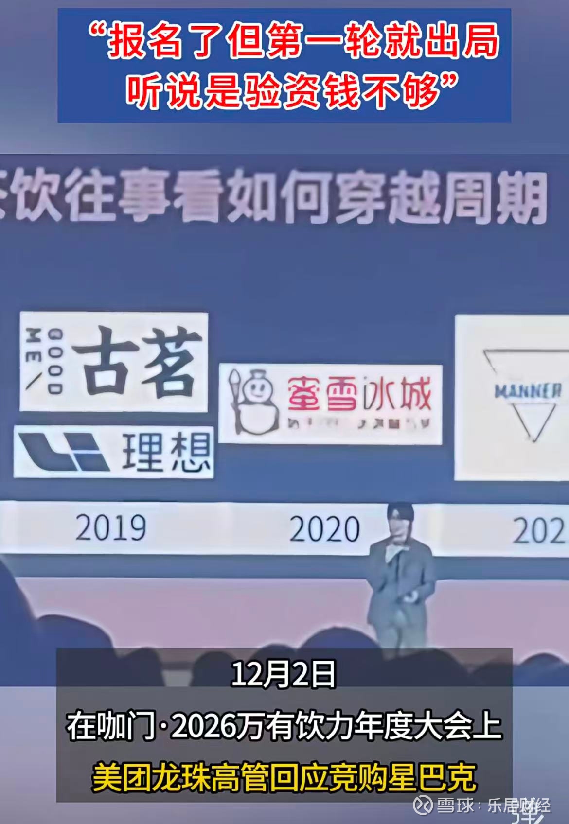 瑞财经 吴文婷 12月2日,据媒体报道,美团龙珠创始人朱拥华在“咖门·2026万有饮力年度大会”上透露,美团龙珠曾参与今年早些时候的星巴克中国股权竞购,但因验资未能通过,最终在第一轮便退出了竞标。