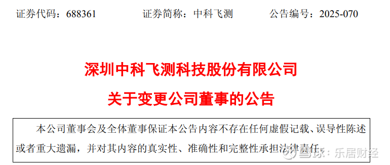 公告显示,深圳中科飞测科技股份有限公司董事会近日收到刘臻书面辞职报告,其因个人原因,于2025年12月3日申请辞去公司第二届董事会董事职务,原定任期到期日为2027年1月3日,辞职后不再继续在上市公司及其控股子公司任职,也不存在未履行完毕的公开承诺。
