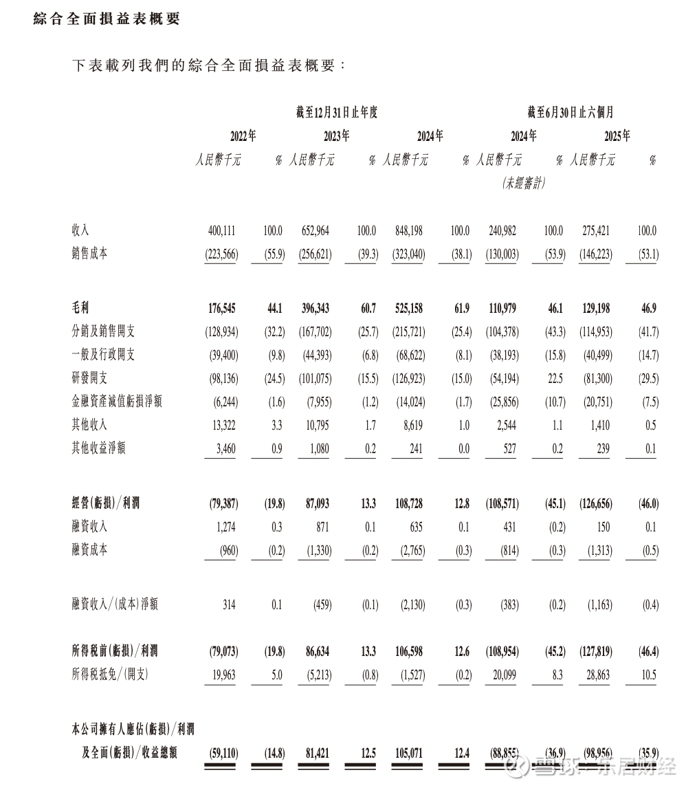 2025年上半年,公司实现收入为2.75亿元,同比增长14.29%;公司拥有人应占(亏损)/利润及全面(亏损)/收益总额为-9895.6万元,上年同期为-8885.5万元。