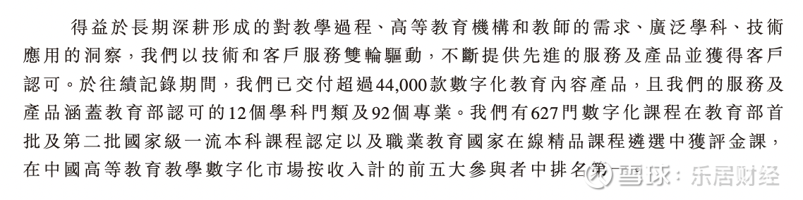 于往绩记录期间,卓越睿新已交付超过4.4万款数字化教育内容产品,且公司的服务及产品涵盖教育部认可的12个学科门类及92个专业。其中,有627门数字化课程在教育部首批及第二批国家级一流本科课程认定以及职业教育国家在线精品课程遴选中获评金课。