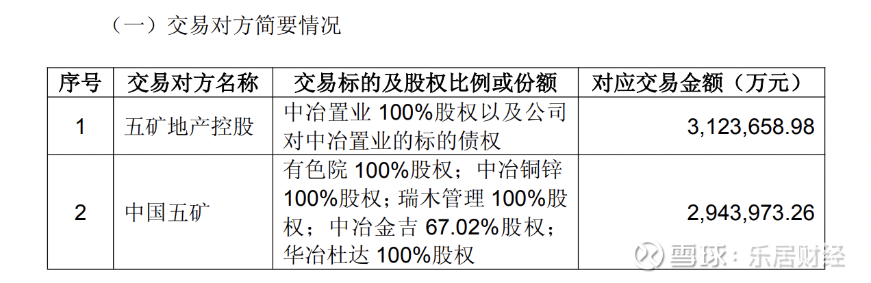 其中,中冶置业100%股权以及公司对中冶置业的标的债权,对应交易金额312.36亿元。有色院100%股权;中冶铜锌100%股权;瑞木管理100%股权;中冶金吉67.02%股权;华冶杜达100%股权,对应交易金额294.39亿元。