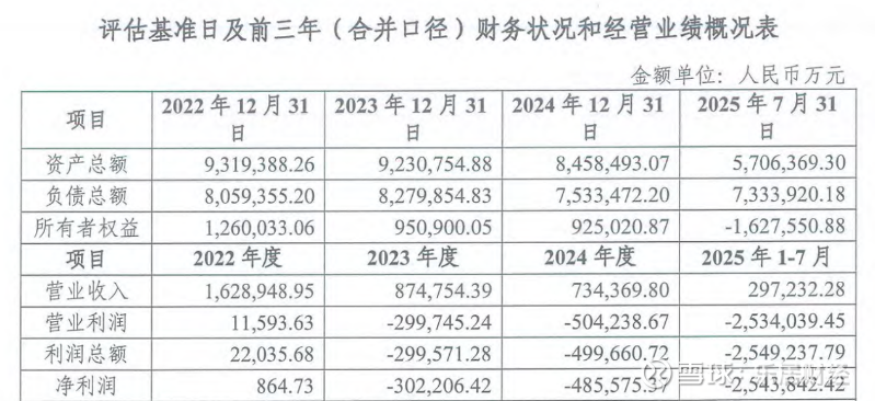 需要注意的是,中冶置业自2023年以来持续面临经营亏损的局面,2025年上半年净亏损约17.77亿元;而根据最新披露数据,2025年1-7月该公司净亏损达到254.38亿元,相当于上半年逾14倍。受此拖累,其净资产已跌至-162.76亿元,处于“资不抵债”状态。