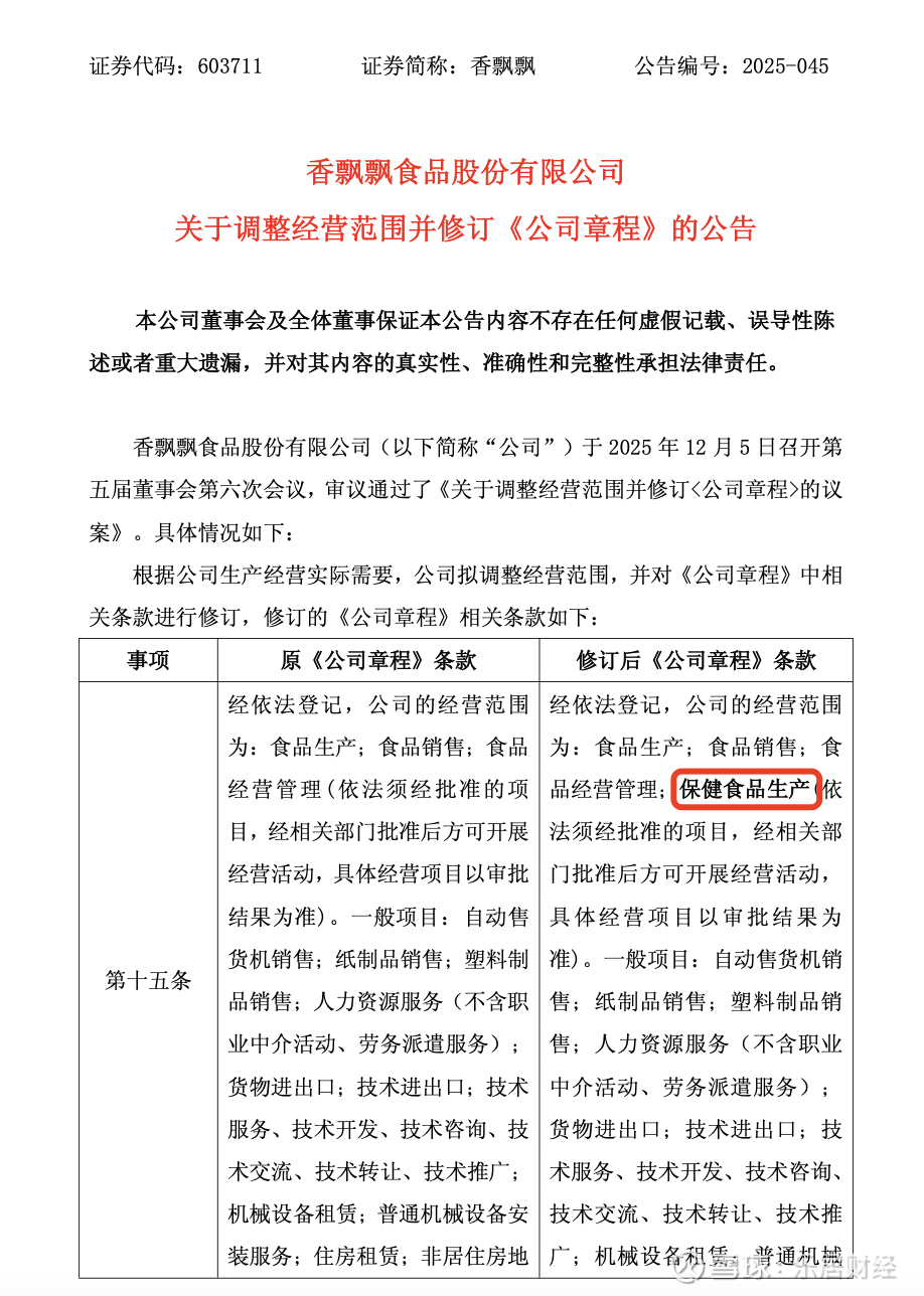 在业内人士看来,此次调整标志着香飘飘在巩固现有业务的同时,可能正计划向保健食品领域拓展新的业务增长点。