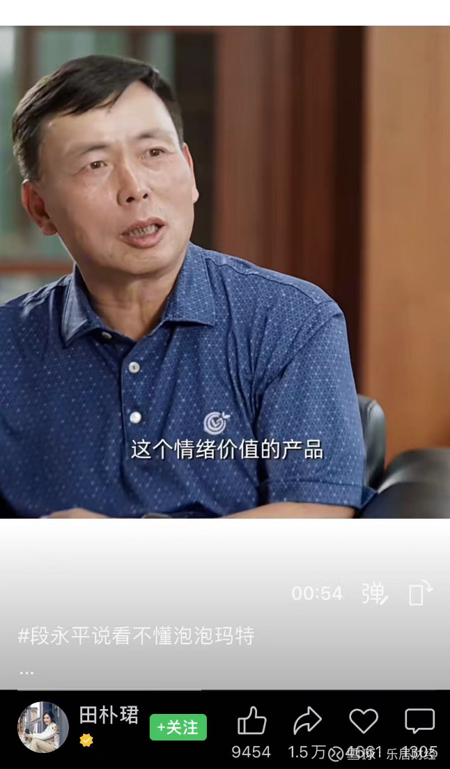 “泡泡玛特创始人王宁年纪也不大,却能把情绪价值类产品做得极具影响力,这背后绝非‘狗屎运’。”段永平说道。