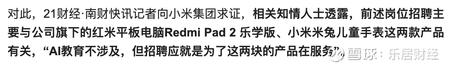 当日,小米集团在招聘平台上发布了多个AI教育相关岗位招聘需求,引发广泛关注,被业内人士解读为小米有意涉足AI教育领域。