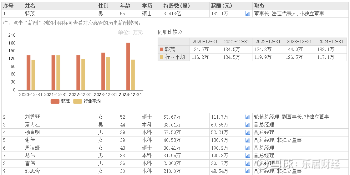 据东方财富网数据,郭茂2024年领薪182.1万元,再升科技副总、董事郭思含同年领薪48.54万元。