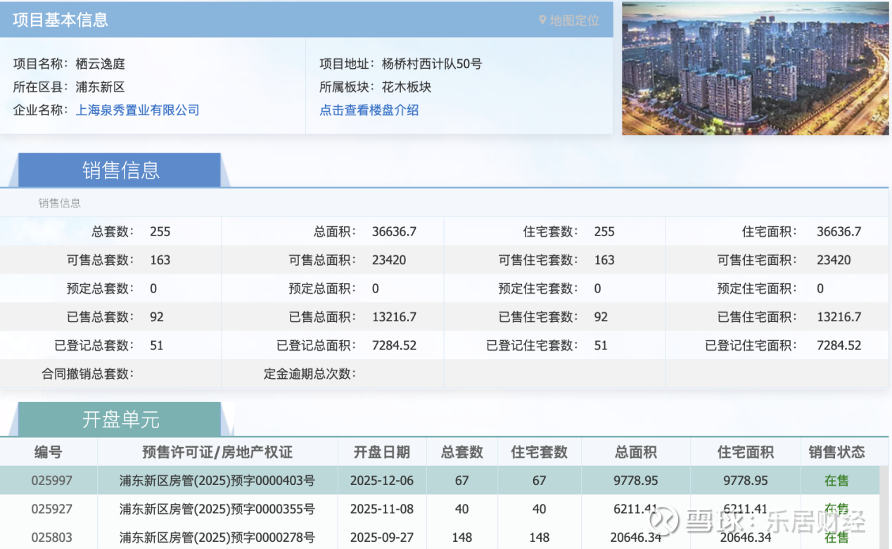 截至目前,项目累计推出255套住宅,网上房地产数据显示已售92套,销售率36%。