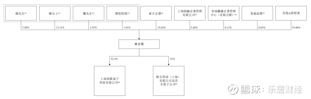 目前富瀚微赴港的股东架构中,东方企慧直接持股15.62%;杰智控股直接持股1.91%,并与杨小奇、陈春梅、龚传军,通过一致行动协议,共同组成单一最大股东集团成员,合计持有25.09%的股份。