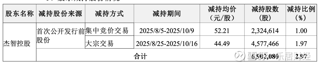今年7月,富瀚微公告,杰智控股计划三个月内通过集中竞价或大宗交易方式减持不超过约690万股,原因在于“基金到期退出安排”。10月17日,杰智控股通过竞价交易和大宗交易完成减持计划,累计变现约3.25亿元。减持完成后,持股比例降至1.91%。