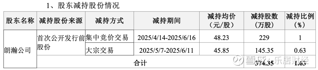 更早一点的时候,今年6月份,上海朗瀚因自身资金需求,完成减持374.35万股,变现1.77亿元。