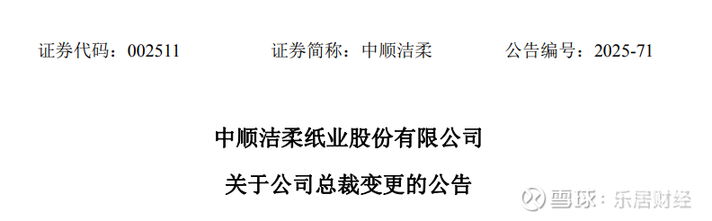 公告显示,中顺洁柔纸业股份有限公司董事会近日收到董事长兼总裁刘鹏的书面辞职报告。因公司战略发展需要,刘鹏申请辞去总裁职务,辞职后仍担任董事长、提名委员会委员、战略与可持续发展委员会委员职务。刘鹏的辞职申请自董事会收到报告之日起生效。