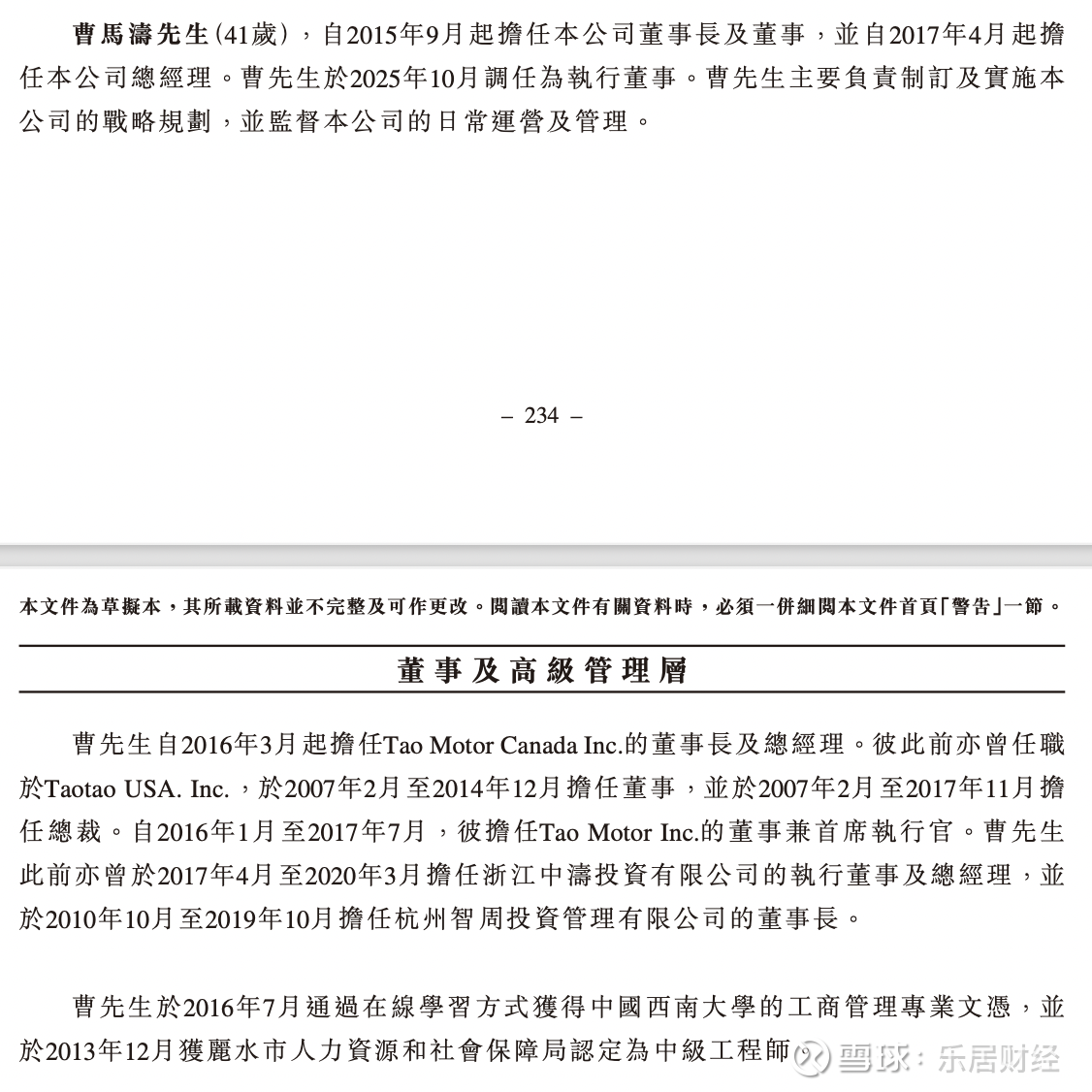 父亲曹跃进在2004年创立涛涛集团,将生意拓展到安全门和汽摩配领域;1984年出生的曹马涛,在31岁时创立了涛涛车业。