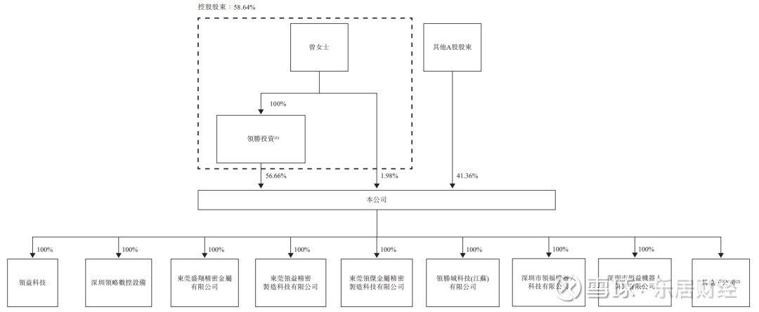 截至递表曾芳勤直接持有领益智造1.98%股份,并通过持有领胜投资100%权益,合计控制领益智造58.64%的股份,为最终实益控股股东。