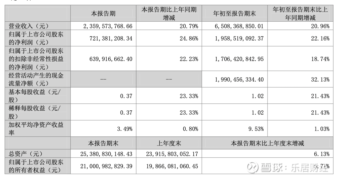 2025年前三季度,公司实现营收为65.08亿元,同比增长20.96%;归母净利润为19.59亿元,同比增长22.16%。
