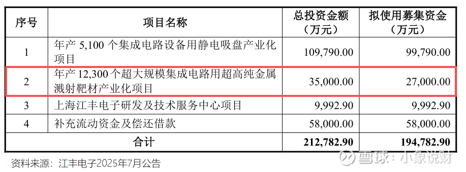 7月10日,江丰电子一纸公告发布拟向特定对象发行股份,募集资金不超过19.48亿元,用于静电吸盘与溅射靶材项目的建设与补充流动资金。