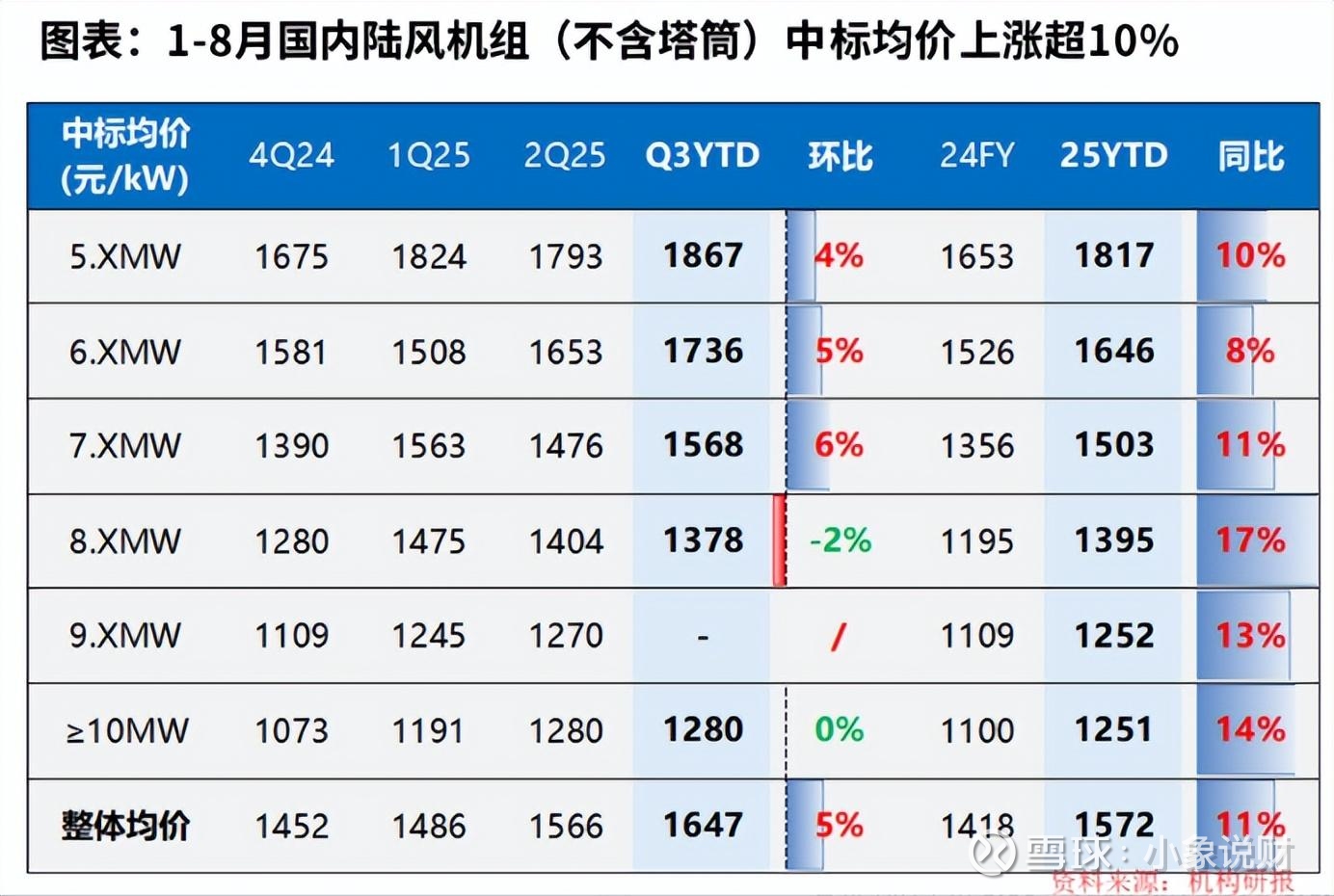 同时,风机中标价格也出现了持续回暖,2025年1-8月国内风机中标均价为1572元/kW,较2024年全年上涨约11%。