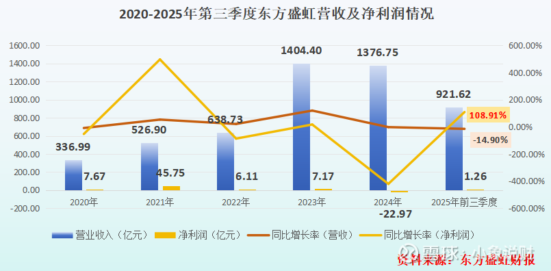2025年前三季度,东方盛虹营收921.62亿元,同比下滑14.9%;净利润却为1.26亿元,同比增长108.91%。