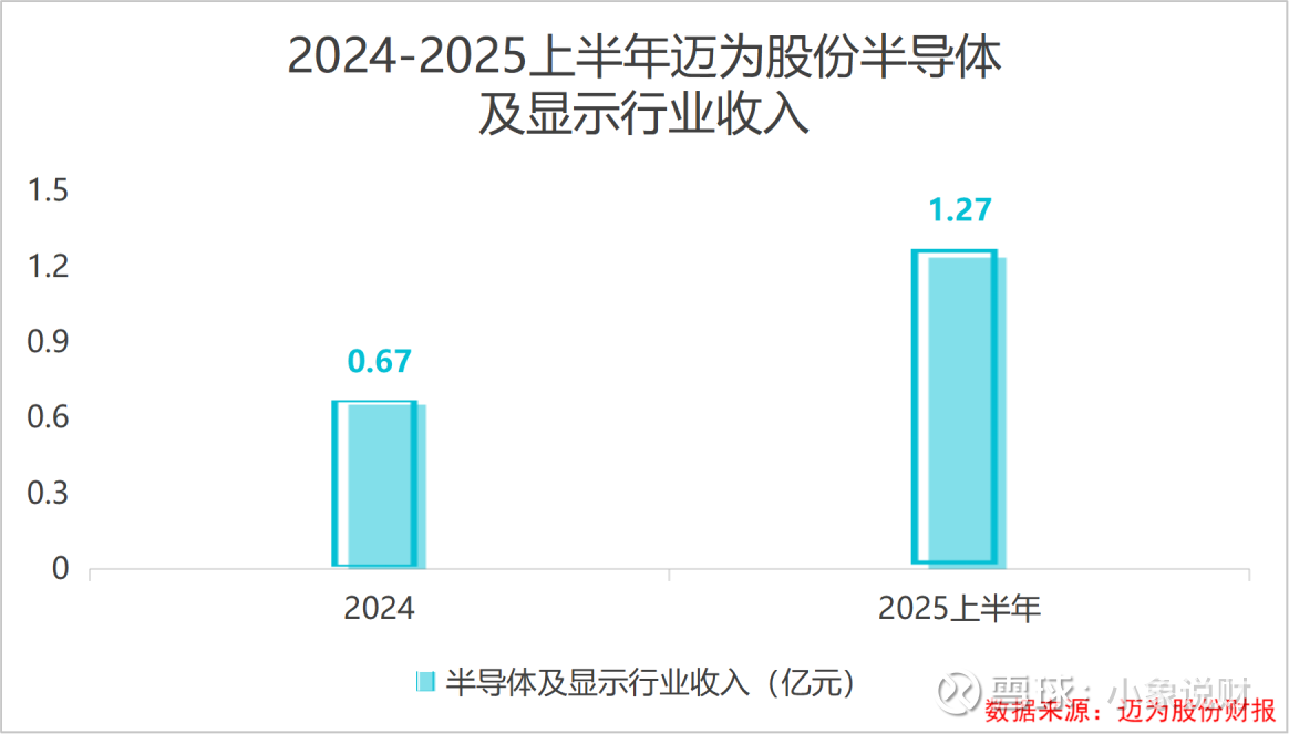 2024年公司半导体及显示行业实现营收0.67亿元,2025年上半年半导体及显示业务收入达到1.27亿元,较2024年全年实现大幅增长。