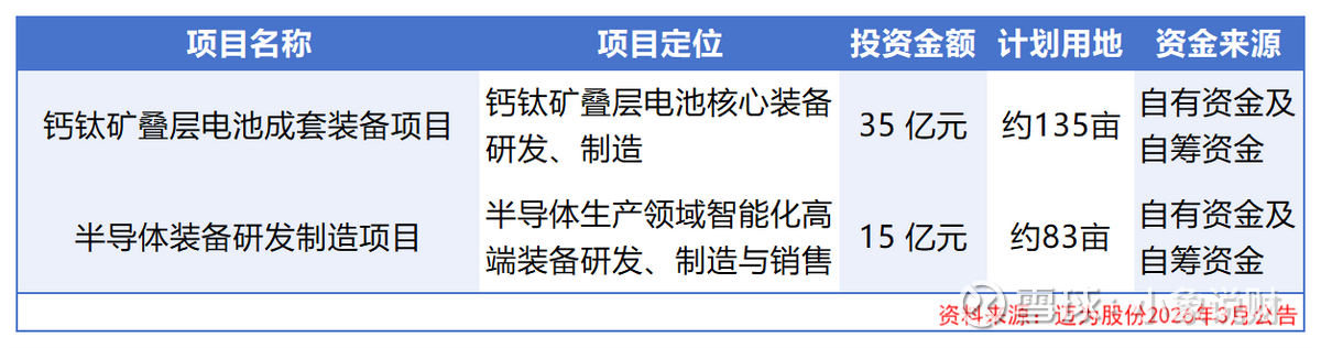 35亿加码钙钛矿叠层电池装备,抢占下一代光伏技术风口;15亿布局半导体装备,破解单一赛道依赖。