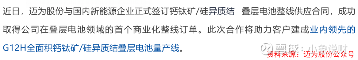 2025年12月,迈为股份成功拿下行业内首个钙钛矿/硅异质结叠层电池整线供应订单。