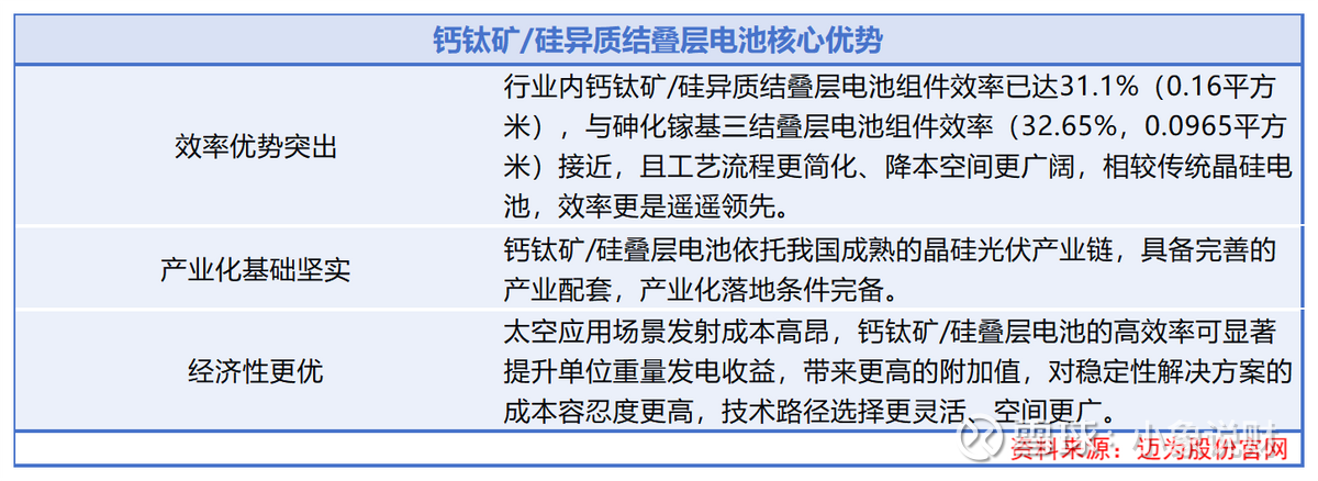 而长期来看,钙钛矿/硅异质结叠层电池效率优势突出,有望成为太空太阳能下一代关键技术。
