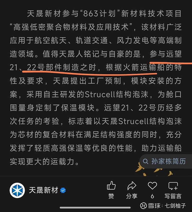 天晟新材参与“863计划”新材料技术项目“高强低密聚合物材料及应用技术”,该材料广泛应用于航空航天、轨道交通、风力发电等高端制造领域。值得天晟人铭记与自豪的是,参与远望21、22号部件制造之时,根据火箭运输船的特性及要求,天晟提出工厂预制,模块安装的方案,采用自主研发的Strucell结构泡沫,为舱口围量身定制了保温模块。远望21、22号历经多次任务的考验,标志着以天晟Strucell结构泡沫为芯材的复合材料在满足结构强度的同时,充分发挥了轻质高强保温等优良的性能,助力运输船实现更大的运载力。
