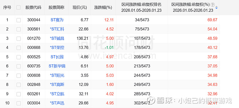 ST板块2026年第一阶段(五一节以前)大家觉得$*ST汇科(SZ300561)$ $ST赛为(SZ300044)$ $ST新华锦(SH600735)$ ,谁能摘得涨幅第一啊?会不会这三只股票分别包揽第一,第二,和第三名;请说说谁是你心目中ST板块第一阶段涨幅第一?