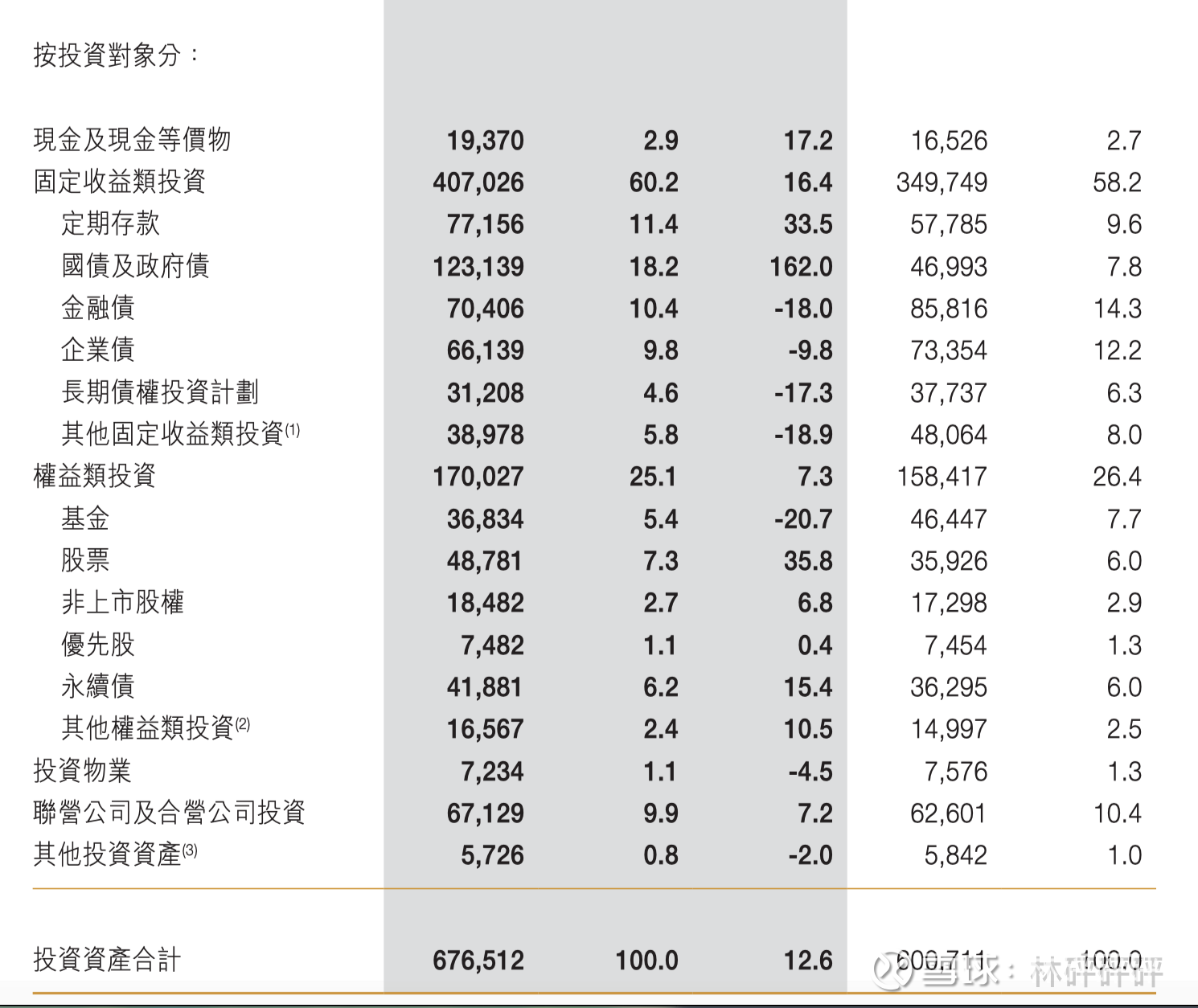 翻看了一下历年财报,总结了一下,这三种资产的在总投资资产里的比例:
