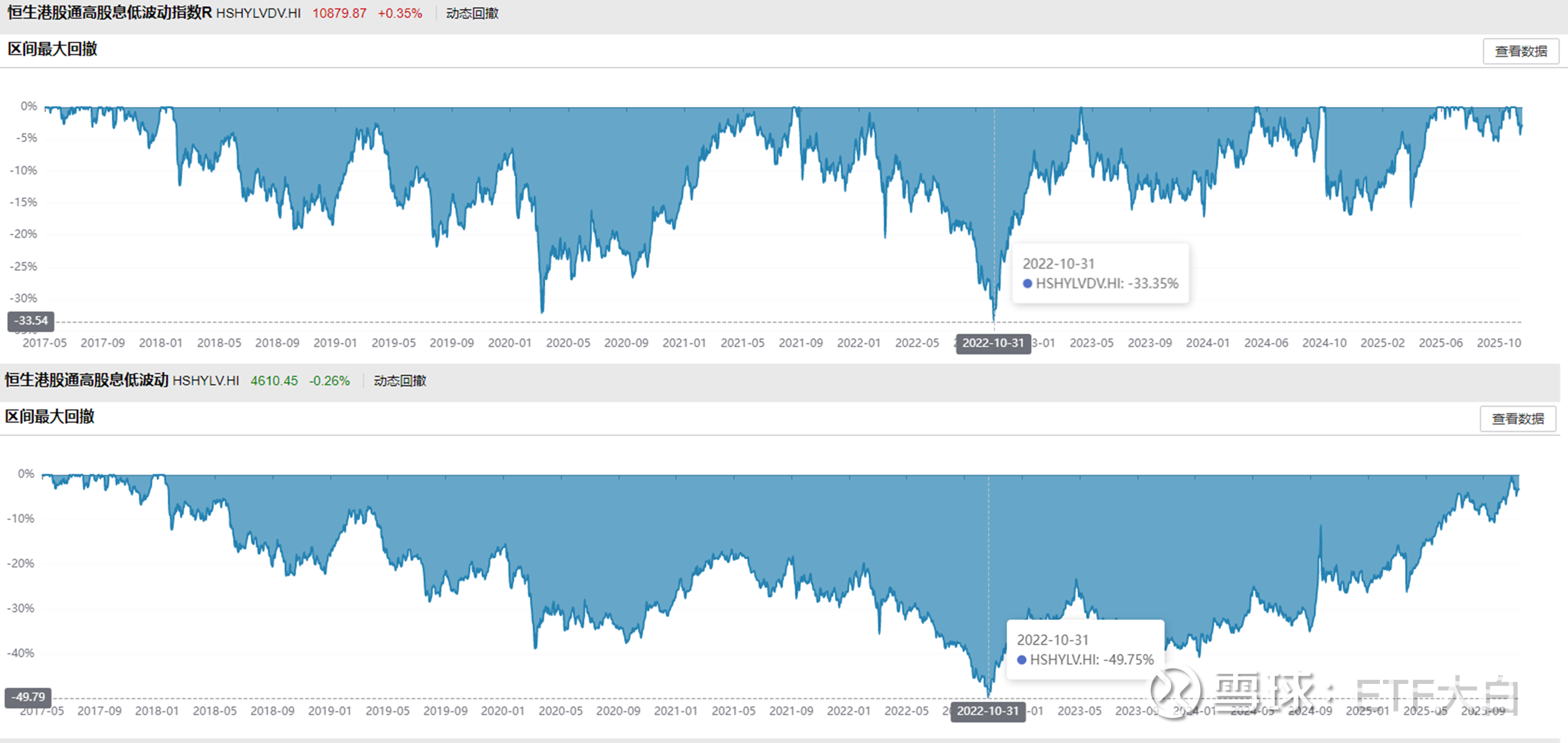 一个最直观地例子,来观察这种“下行保护”便是观察包含分红的全收益指数和价格指数的区别:如图,恒生港股通高股息低波动全收益指数历史最大回撤-33%,而价格指数最大有近-50%!“下行保护”的安全垫足足有17%左右!