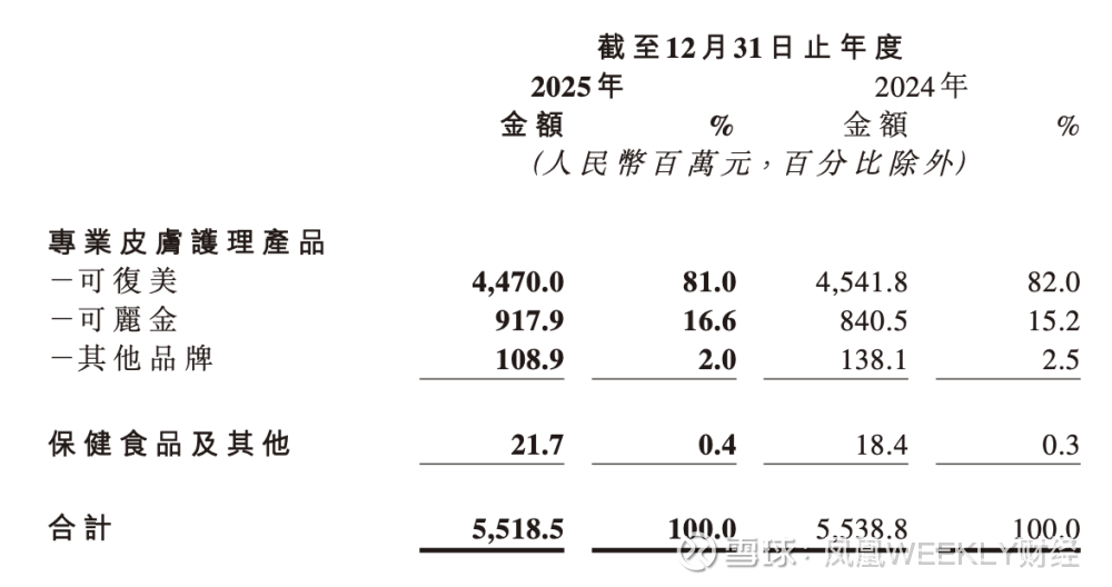 作为贡献超八成收入的主力,可复美2025年实现销售收入约44.7亿元,同比下降近1.6%,占总收益的81%。对于一个长期保持高增长的大单品而言,这一下滑在其发展轨迹中从未出现。