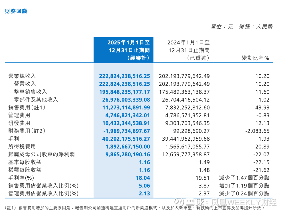 因销售规模增长,年内长城汽车营收达到2228.24亿元,同比增长10.20%;毛利率和归母净利润却双双下滑,毛利率同比降低1.47个百分点至18.04%,归母净利润同比减少22.07%至98.65亿元。