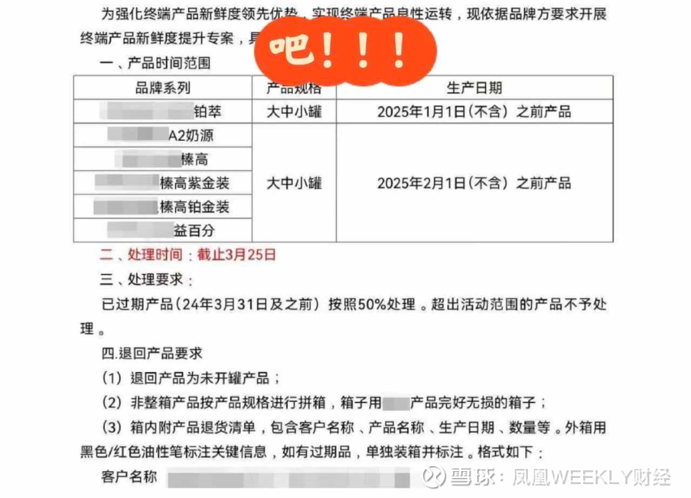 近日,社交平台陆续传出多张打码遮盖品牌信息的奶粉内部处理、渠道回收截图文件,内容指向“某头部外资和国产奶粉品牌集中拉货、清库下架”的情况,另有线下母婴店消费者反馈,a2至初奶粉被集中转运、部分门店现货紧缺。