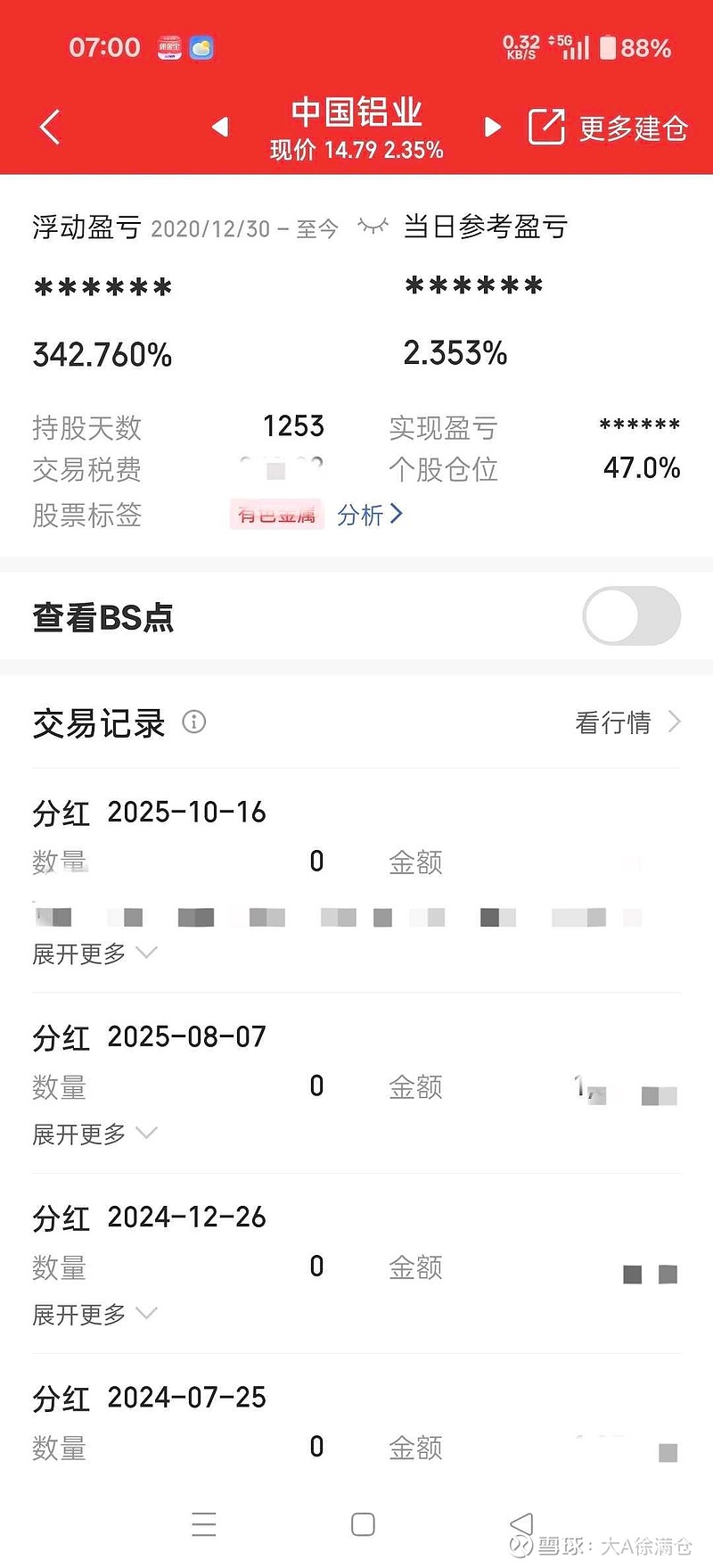 2021年我在底部布局中国铝业时,同样不被多数人认可。但我坚持长期持有,陪伴企业成长,如今股价上涨、股息持续增厚,收益已经给出最好答案。现在我很少再高调看多中国铝业,不是不看好,而是它已完成估值修复,性价比不再占优,但我任然坚定的持有中国铝业,等它的价值充分的兑现。