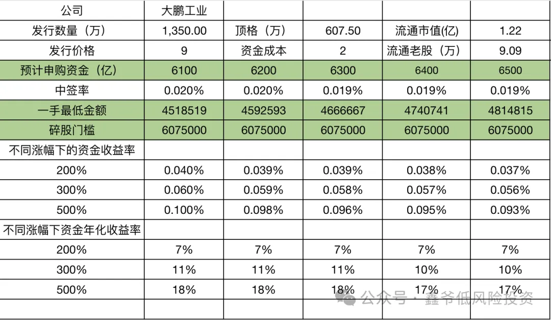 本文包括:大鹏工业的申购分析结论、发行情况、公司简介、业绩情况、预计中签金额和碎股金额估算。关注作者获得专业及时的北交所新股分析。