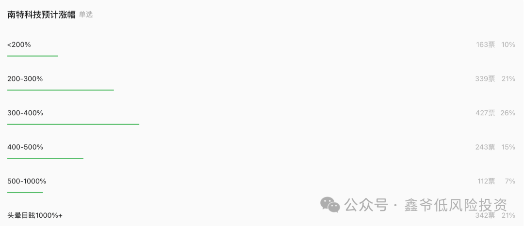 前面做了个投票,大约26%的小伙伴认为涨幅在300-400%。21%的小伙伴认为涨幅在200-300%。这次还是比较谨慎的。