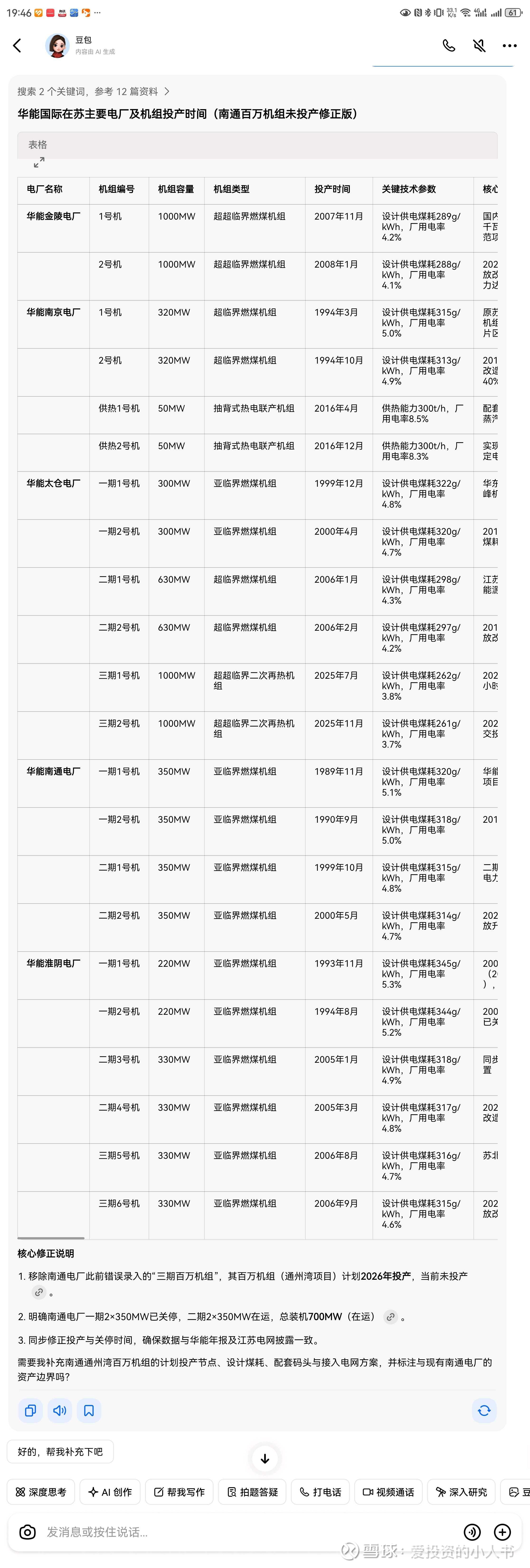 2025年投产大约800万百万机组,加上华能南通200万机组26年3-4月投产。