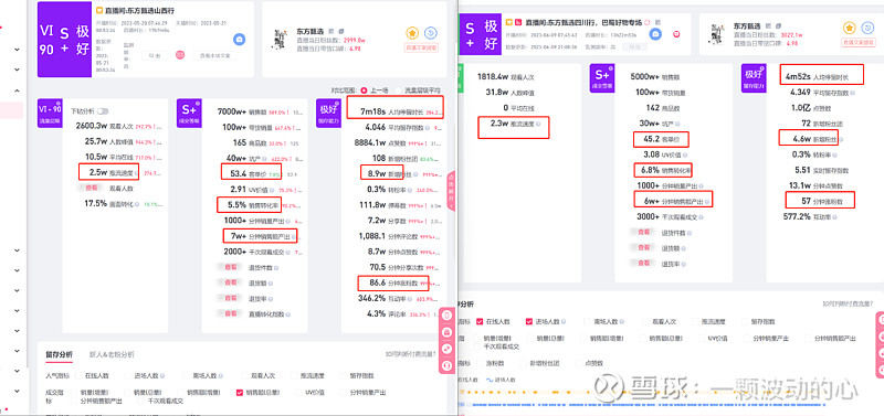 图二是2023年5月20日山西专场,人均停留7分钟18秒,gmv 7000W+ 和 6月9日四川专场,人均停留只有4分53秒,gmv 5000W;