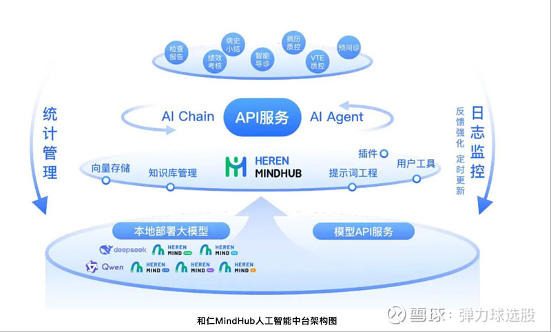 在医疗系统智能化深度发展的关键阶段,和仁科技自2023年启动了 MindHub 人工智能中台的研发,该平台构建了连接AI技术基础设施与医疗场景的核心引擎。2024年7月,MindHub 率先接入 DeepSeek V2 和 Qwen2 系列模型,并在多家医院展开部署;2025年2月,平台已同步支持 DeepSeek R1 模型。通过将人工智能模型的认知能力深度嵌入医院诊疗活动和日常运营中,MindHub 形成了从数据感知到决策执行的闭环智能网络,重构建医疗价值链的底层运行逻辑。目前,MindHub 支持超过60个医疗AI模块的“热插拔”式部署,使医院能够灵活对接不同规模和参数的 AI 模型,更多场景模块还在持续拓展中。无论是快速迭代的通用大模型,还是专门针对医疗领域持续优化的垂直大模型,都能够即插即用,快速部署。在实际应用中,MindHub 展示了两大核心优势:一方面,其分层架构设计保证了对最新大模型技术的敏捷响应能力,另一方面,基于和仁数据中心能力 MindHub 能够与医院 HIS 系统中的全流程数据进行毫秒级联动,确保系统无缝集成人工智能底座能力。03