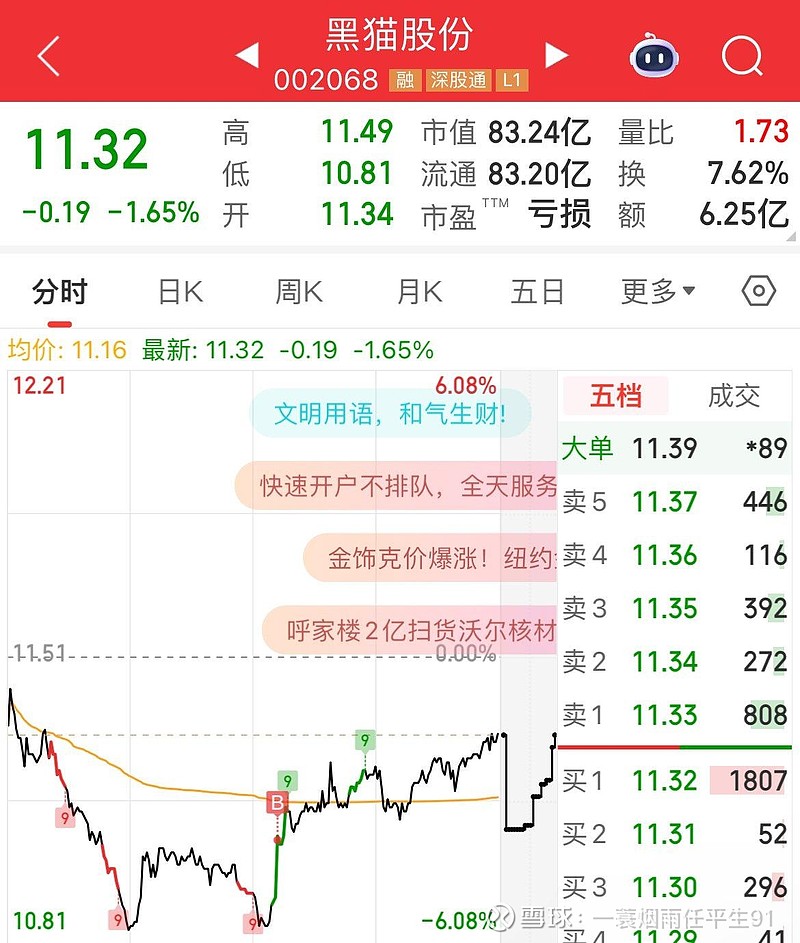 $黑猫股份(SZ002068)$