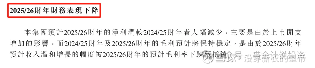 25/26财年上市开支拖累报表变现,预计收入温和增加但是毛利率下跌。