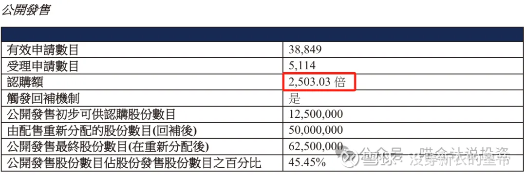 回拨满50%,散户分到6250万股(发售量调整都是给国际配售的)。