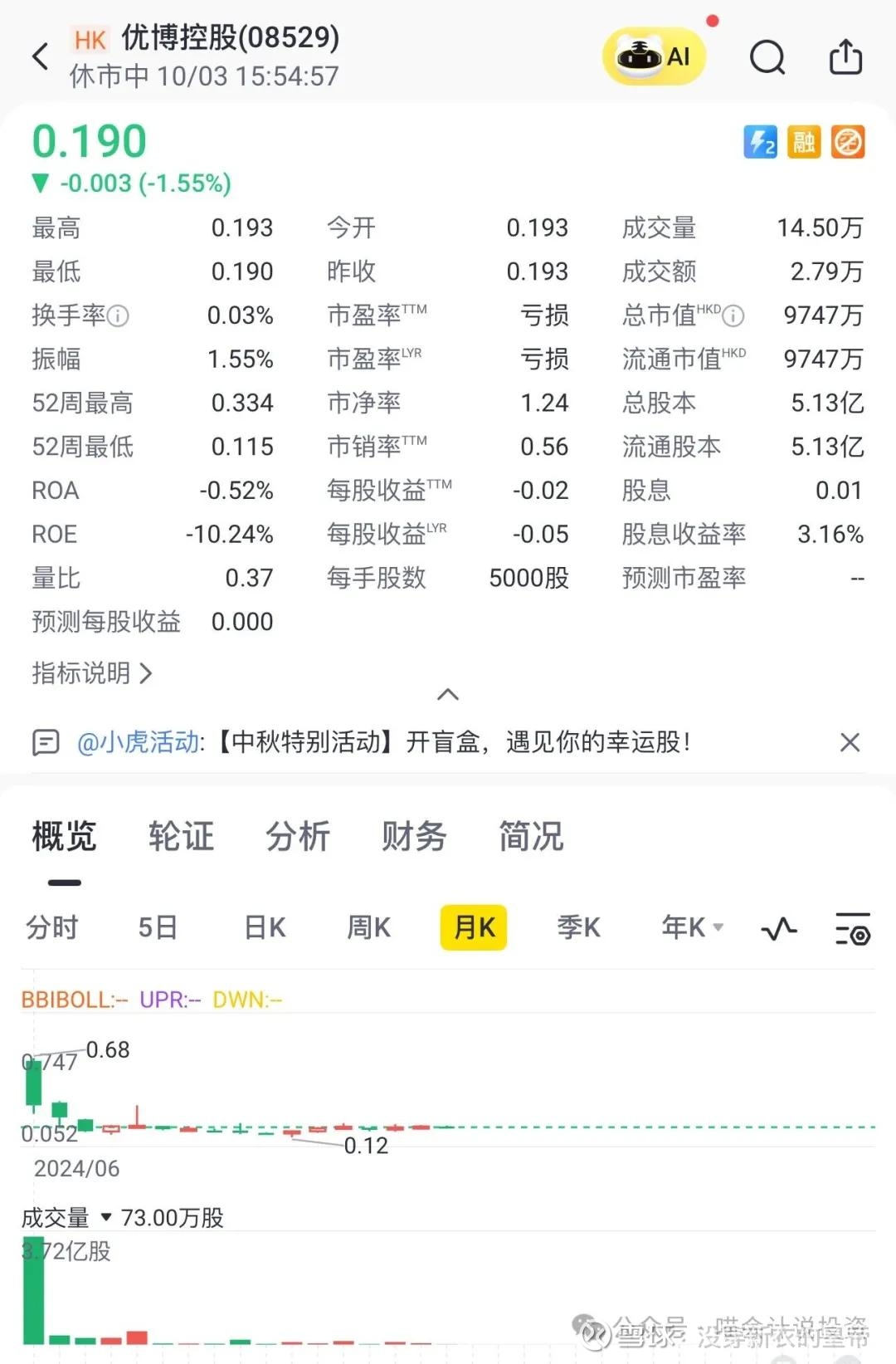 优博控股发行价5毛,选在发行区间的下限发行。