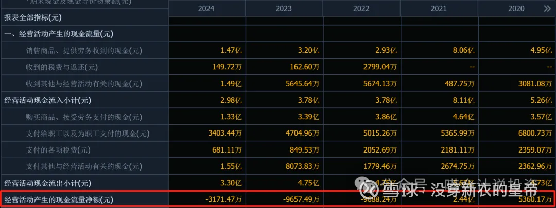 经营活动净现金流:最近三年都是负数,2020和2021年都是正数,正好就是被控造假的两年。现在看是一目了然,但是在2021年、2022年看,如何发现这两年的正数有问题呢?